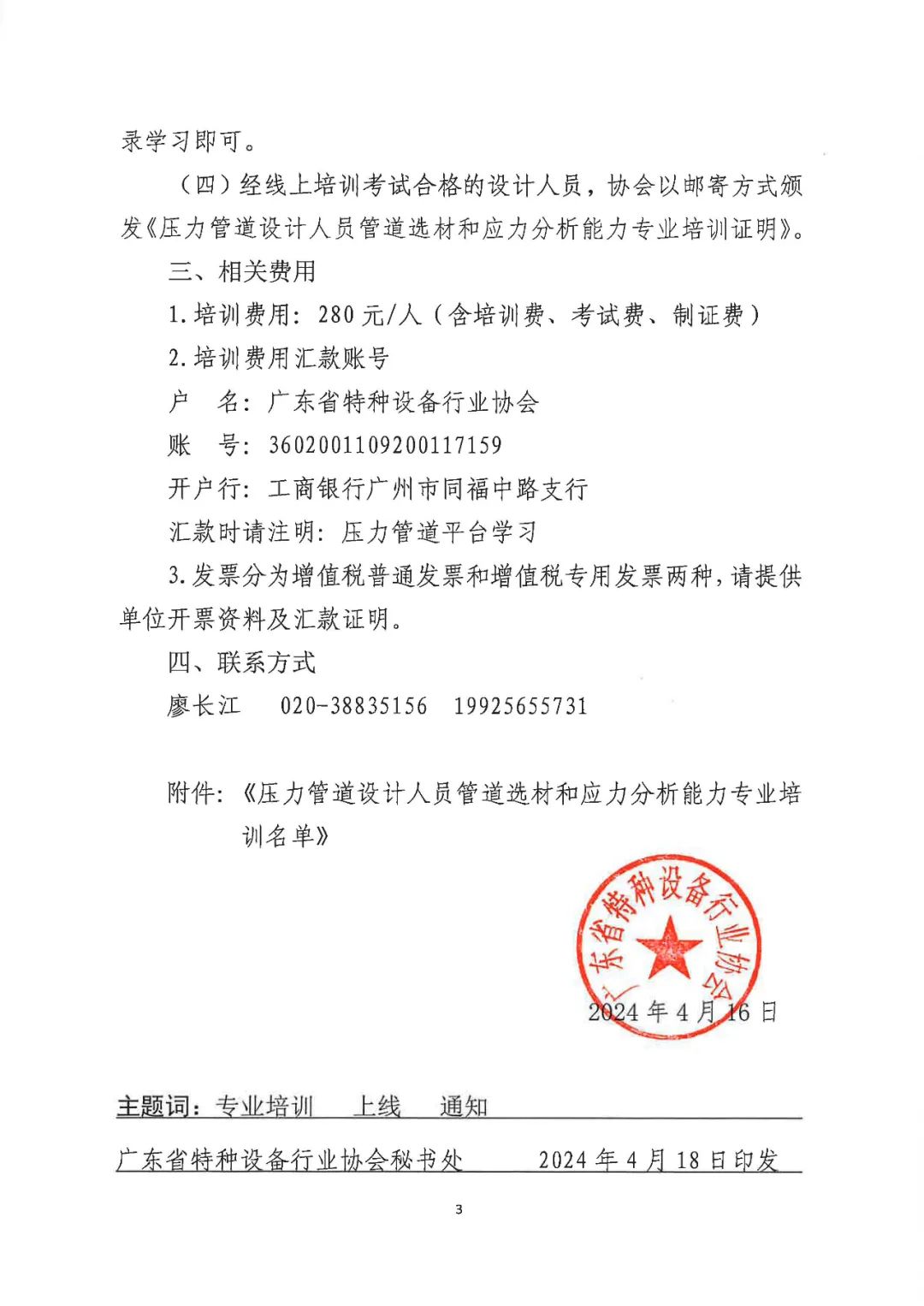 关于广东省特种设备行业协会网络培训平台“压力管道设计人员管道选材和应力分析能力专业培训”上线的通知.pdf