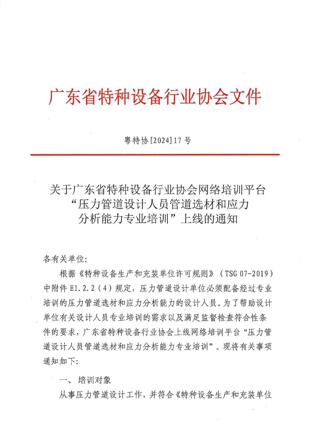 关于广东省特种设备行业协会网络培训平台“压力管道设计人员管道选材和应力分析能力专业培训”上线的通知