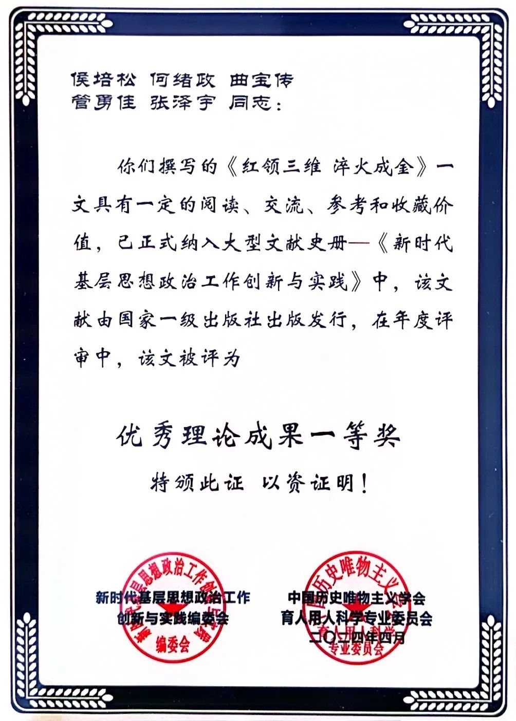 近日,山东三维控股集团党支部党建理论成果《红领三维 淬火成金》一文被收录到由中国红色文化研究会主办的、中共中央党校出版社出版的《新时代思想政治工作创新与实践》一书中,并被评为“优秀理论成果一等奖”。