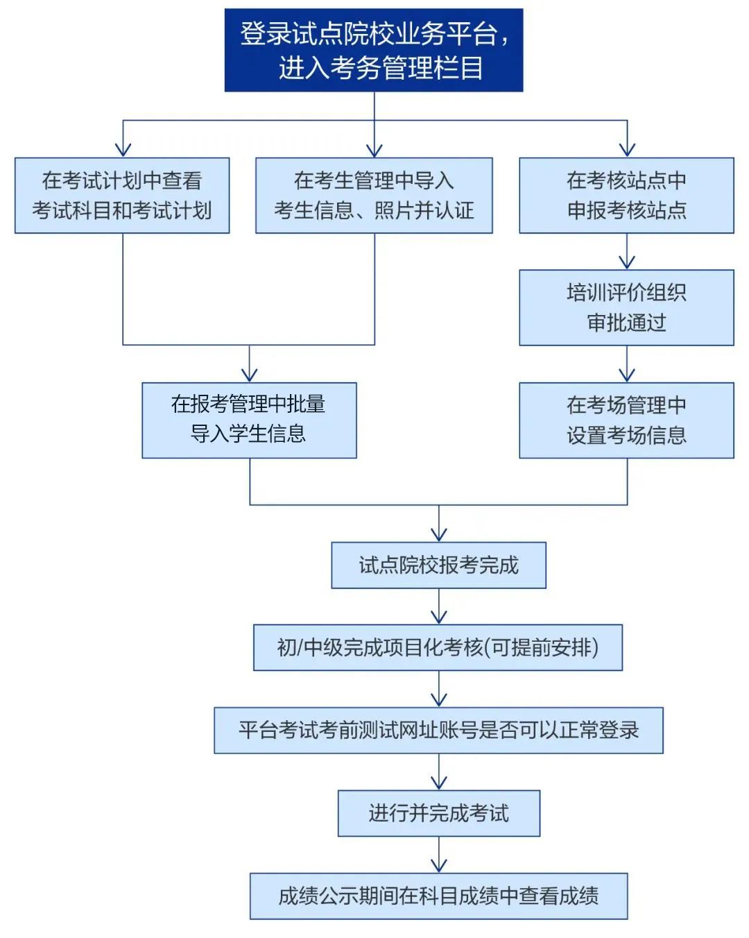 目前考生报名考试暂由试点院校代其批量操作,院校需要登录职业技能等级证书信息管理服务平台: