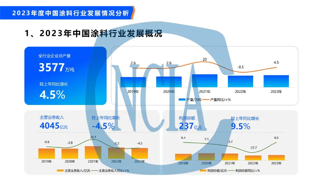 “2023年度中国涂料行业经济运行情况及未来趋势分析”作为中国涂料行业发展白皮书,由中国涂料工业协会于“2024中国国际涂料大会”上发布。