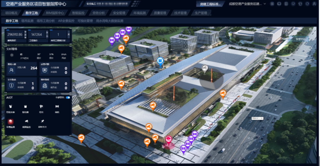 近年来,公司以工程项目为载体,深入推进数字化建造。成都空港产业服务区建设项目基于项目重难点,围绕劳务人员、物资设备、安全环境监测、工期履约、技术质量、商务成本六大管理模块,充分展现了大型城市会议综合体建筑BIM+项企协同应用实践成果。通过以BIM为核心,结合物联网、人工智能、3D技术、5G、数字化管控、智能建造技术,对项目技术、质量、安全、生产、劳务、物资等进行全维度数字化管控,使项目管理更加高效和精准,并取得了良好的经济效益和社会效益。