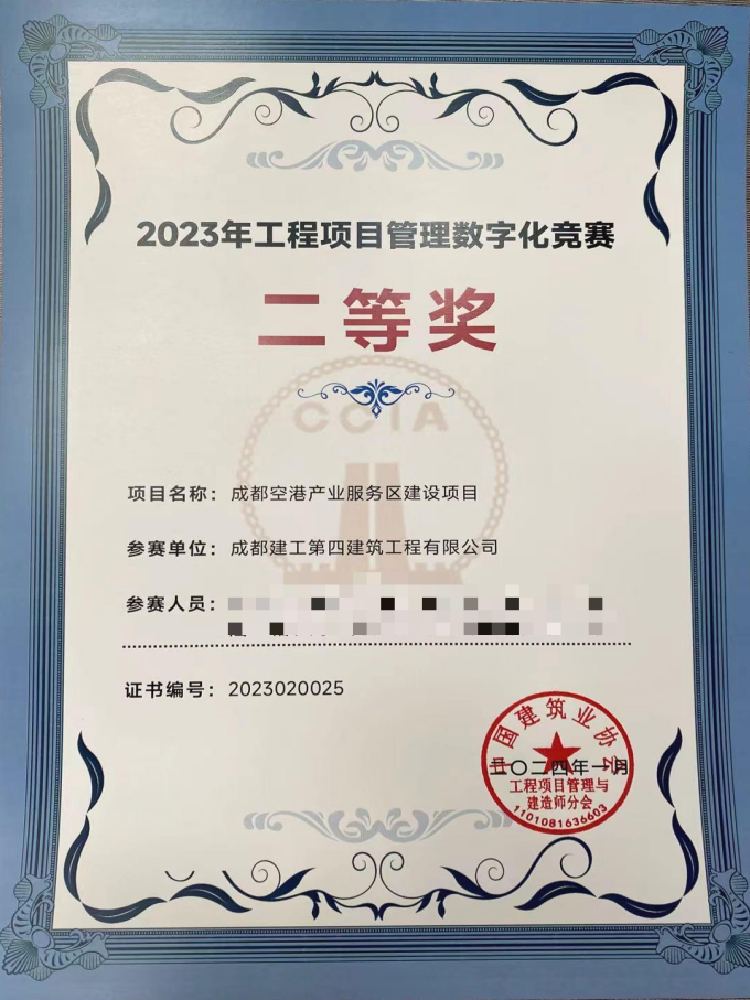近日,中国建筑业协会公布了2023 年工程项目管理数字化竞赛结果,公司成都空港产业服务区建设项目荣获竞赛二等奖。