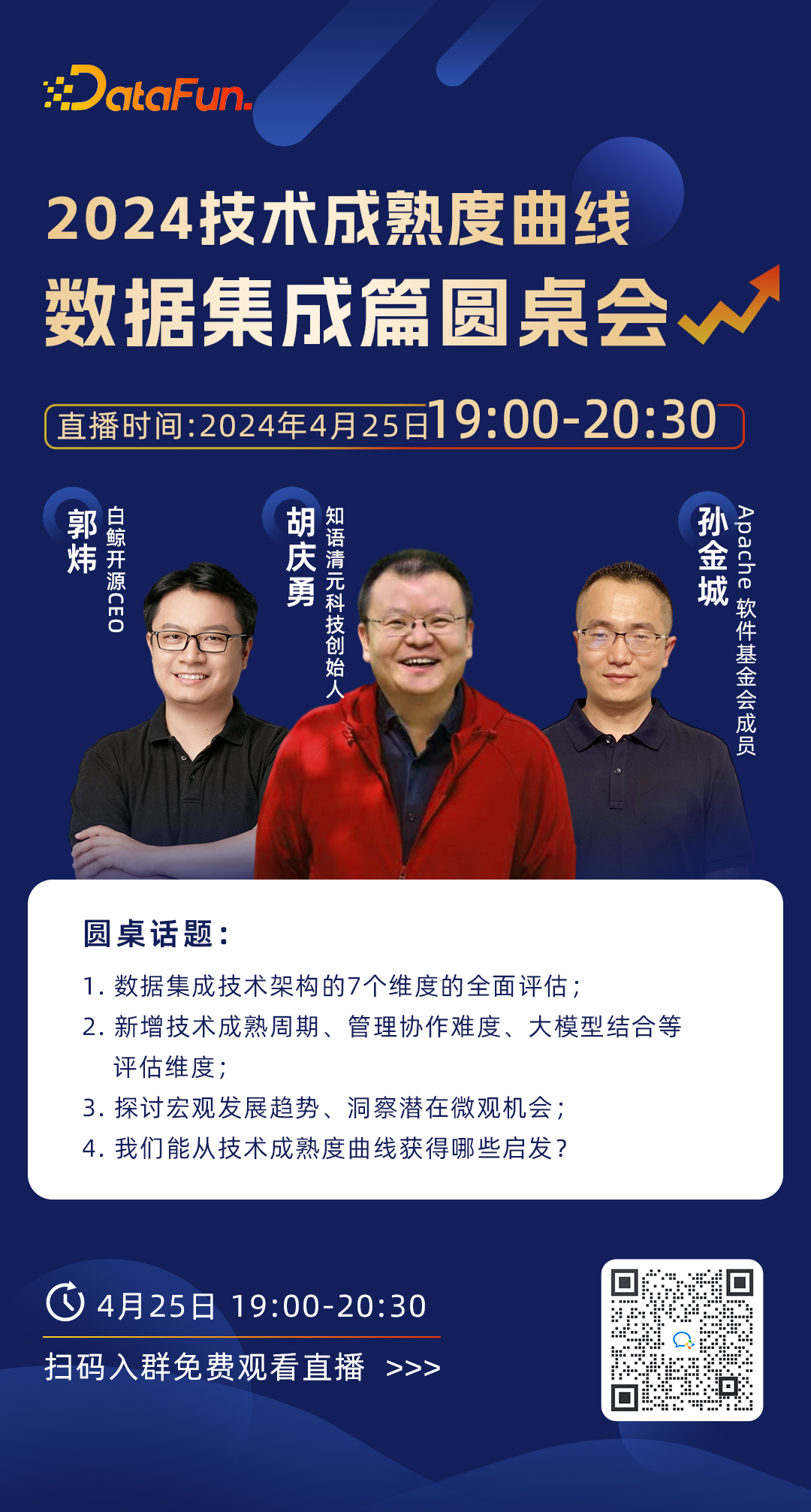 在2024年4月25日19:00-20:30,DataFun将发布新的技术成熟度曲线调研成果——《DataFun技术成熟度曲线2024——数据集成篇》。