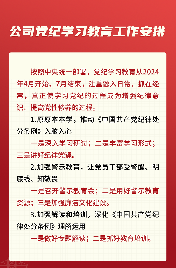会议强调,公司上下要认真谋划、精心组织,确保党纪学习教育扎实开展。