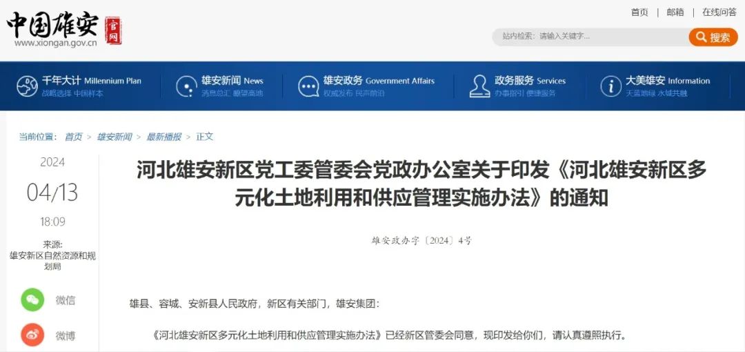 2024年4月13日,雄安新区印发《河北雄安新区多元化土地利用和供应管理实施办法》(以下简称本办法)。本办法是为全力做好北京非首都功能疏解项目承接,全面创新用地模式,精准配置土地资源,保障重大项目落地,在充分落实中央支持政策,结合新区工作实际的基础之上制定。