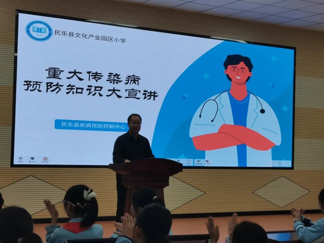 随着春天的脚步向我们走来,万物复苏,气温渐暖,多种病毒和细菌会大量繁殖,是各种传染性疾病高发季节。为切实做好春季传染病防控工作,使学生能更加深入了解和掌握春季传染病防控知识,2024年4月18日下午,民乐县疾控中心人员在文化产业园区小学开展了重大传染病预防知识大宣讲活动,做到“春季传染病,预防我先行”。