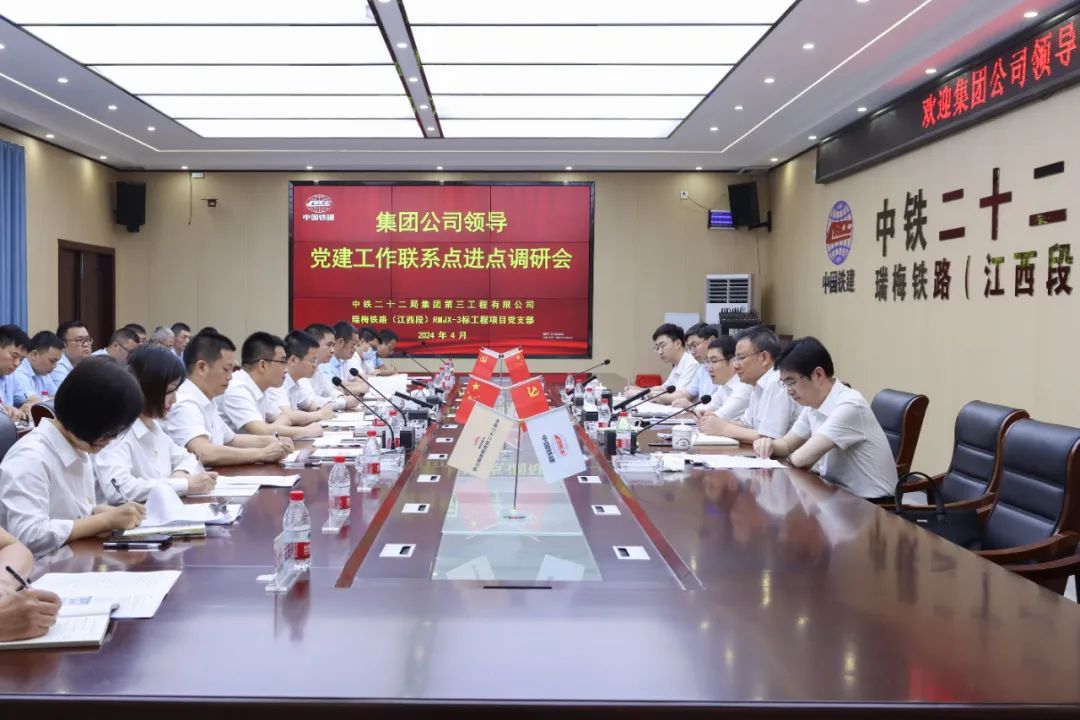 4月17日至18日,中铁二十二局党委书记、董事长赵红鹰在赣州市安远县瑞梅铁路项目部召开三公司党建工作联系点进点调研会,并到项目施工现场进行了督导检查。