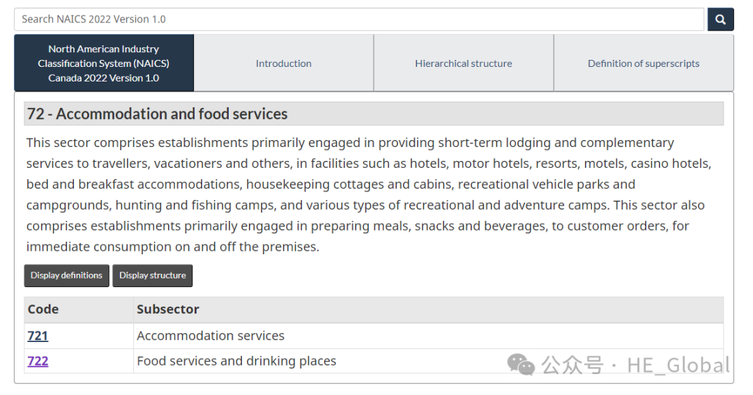 食品和住宿行业(Accommodation and Food Service)包括餐厅,咖啡厅,酒店,度假村,农场农家乐,露营点等提供住宿,饮食,饮料的客户服务的场所。