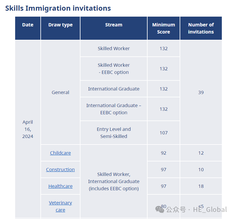以下是本周4月16日,BCPNP最新抽签情况:普通类别涨至132分,只邀请39个人;半技工类别涨停至107分。定向抽签幼教类上涨至92分;建筑类,医护类再次上涨至97分;兽医类80分。