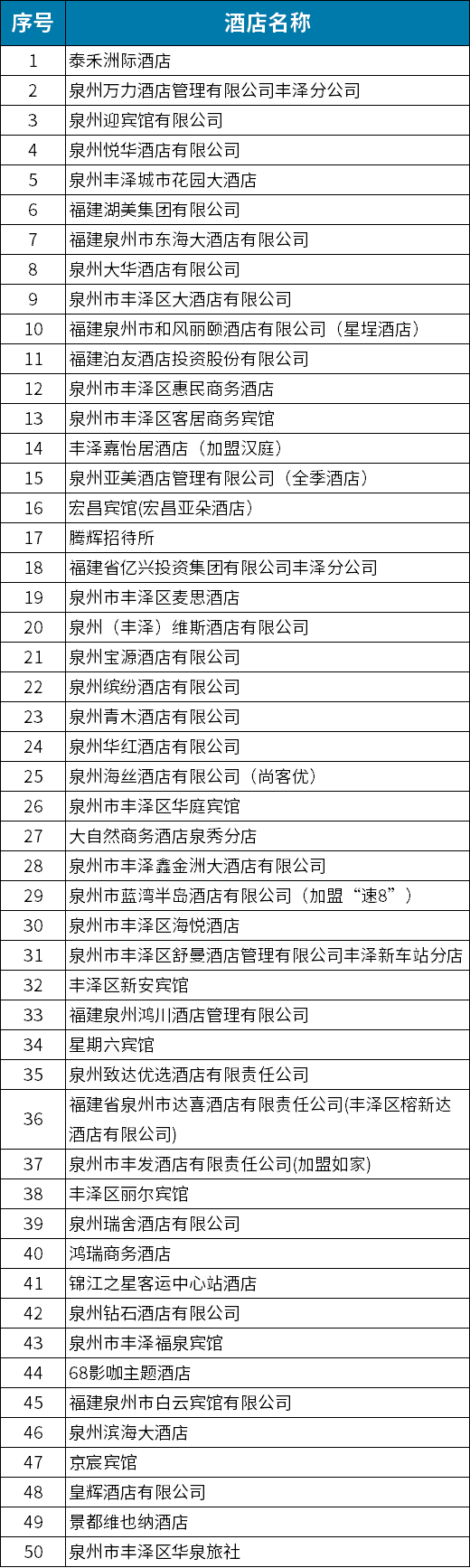 最新发布!丰泽百家酒店住宿企业集体承诺!