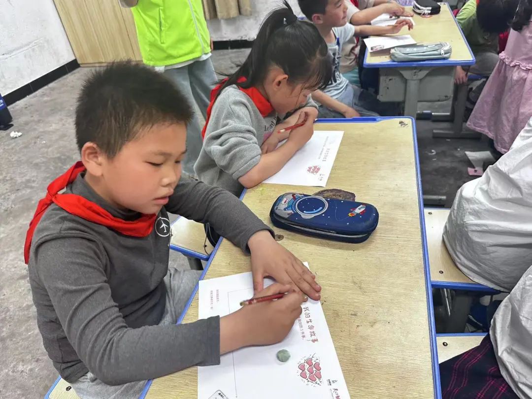 随后,在社工老师的指导下,入党积极分子将卡片分发给每位小朋友,引导小朋友们在卡片上写上他们生命中最有意义的三件事,并写下他们的梦想。活动过程中不仅锻炼了小朋友们的动手能力,更在潜移默化中培养了他们的生命意识和自我认知,让他们感受到了生命的珍贵和美好。有助于小朋友们建立正确的生命观和价值观,培养他们的同理心和责任感。