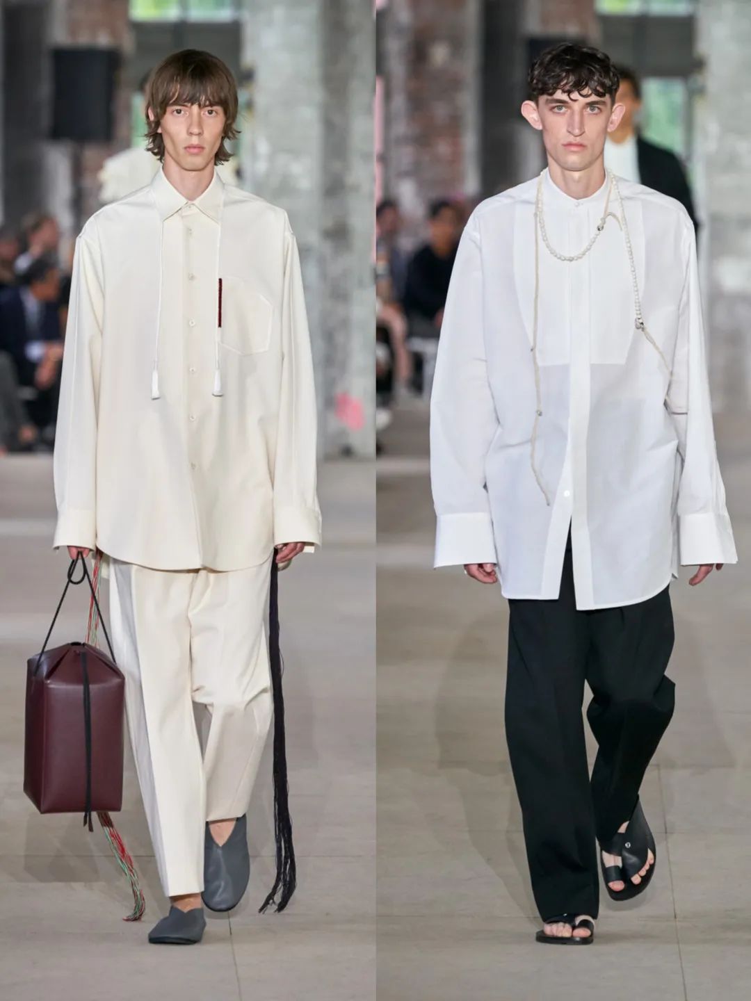 今天分享的秀场来自意大利时装品牌Jil sander 2020春夏男装。作为极简主义的鼻祖,它有着无与伦比的剪裁廓形功力,这季以极其经典的黑白色,大胆的oversize版型,简约利落地演绎出前卫、动感、时髦的男装。