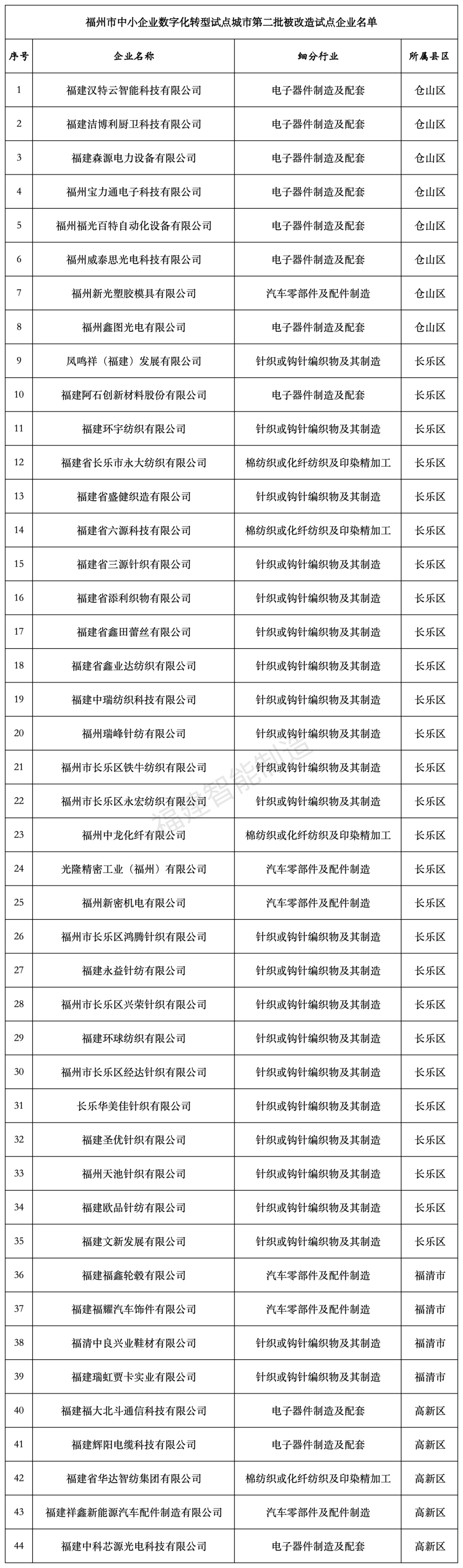 福州市中小企业数字化转型试点城市第二批被改造试点企业名单