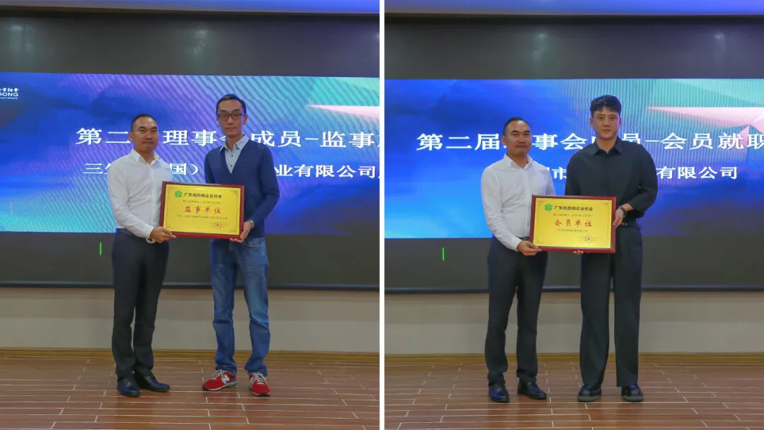 监事单位-三生(中国)健康产业有限公司广东分公司(图左) / 会员单位-深圳市荣格科技有限公司(图右)