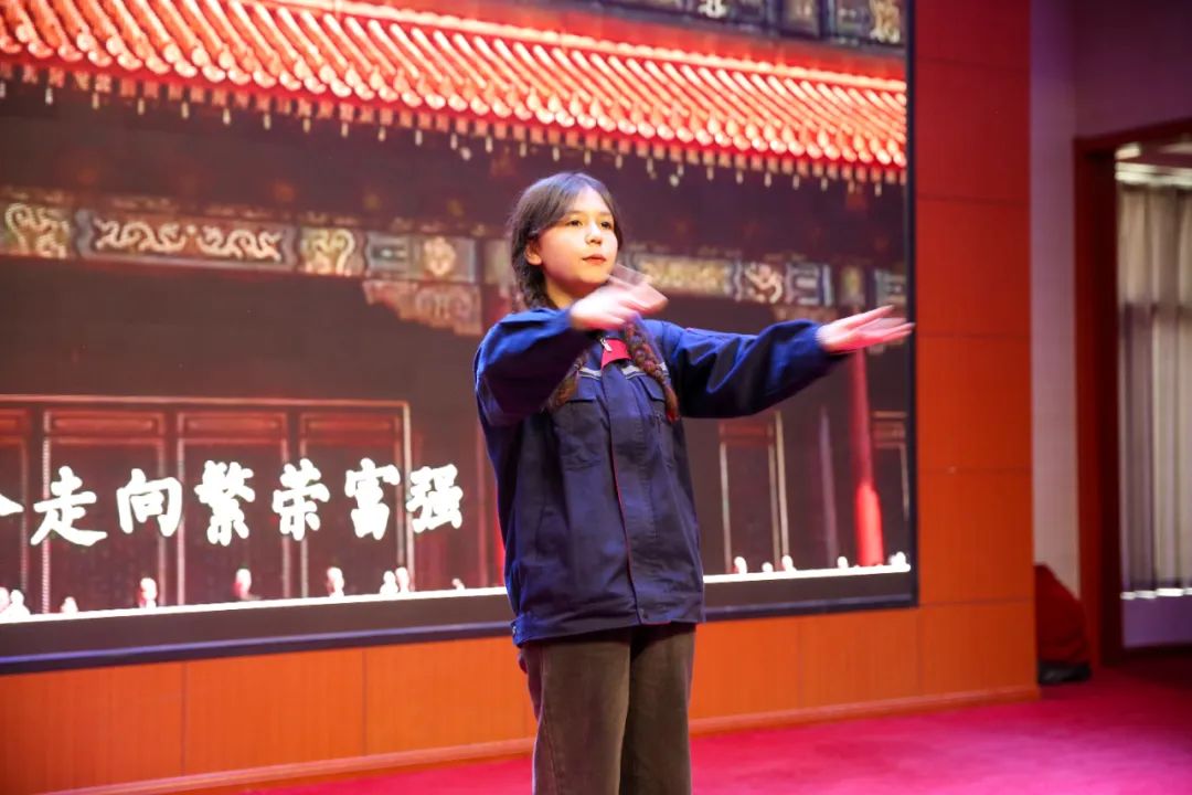 同唱一首歌环节,在新疆学员热米莱·吐尔逊的指挥下,在场全体师生共同唱响《歌唱祖国》,唱出了中华民族一家亲,各民族同心共筑中国梦的共同心愿。