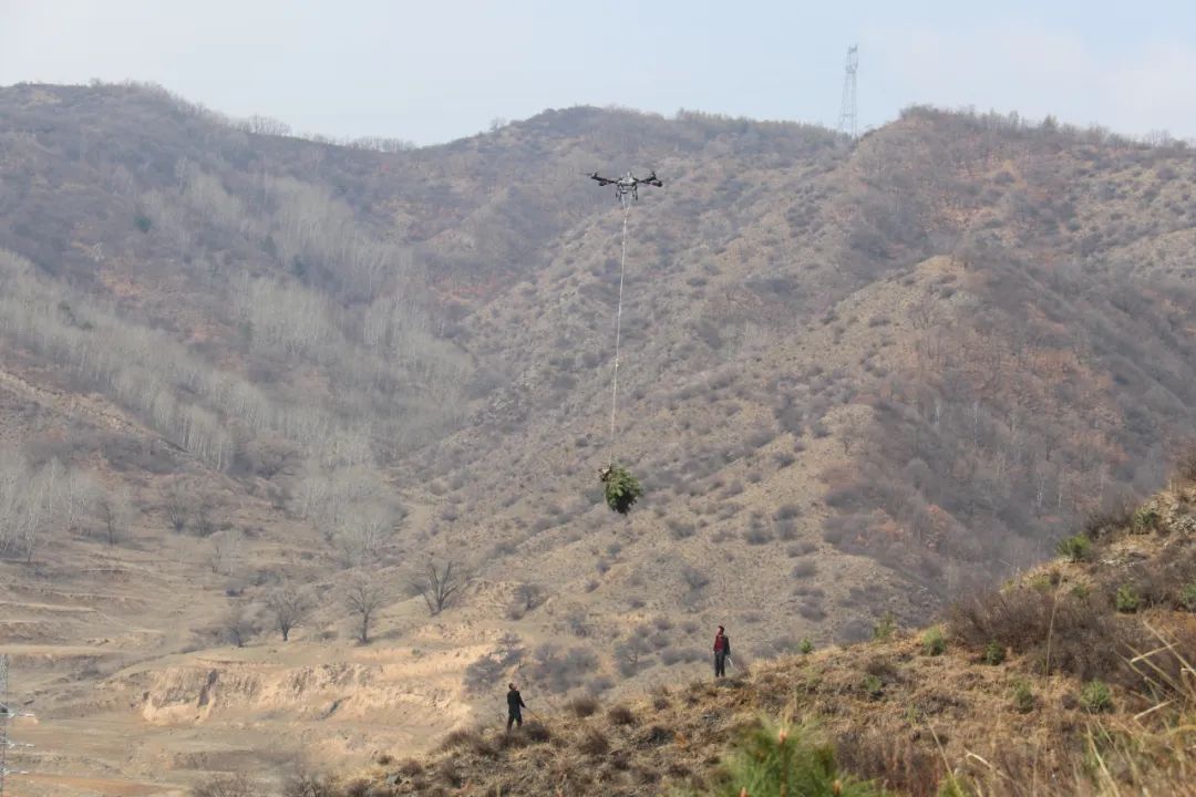 今春以来,山西省黑茶山国有林管理局针对造林运输成本高、耗时长、安全隐患大等问题,积极探索新质生产力发展路径,组织指导河口林场因地制宜制定山地造林无人机应用方案,降低运输成本,彻底解决了山地造林运输苗木的难题,提升了造林绿化效率。