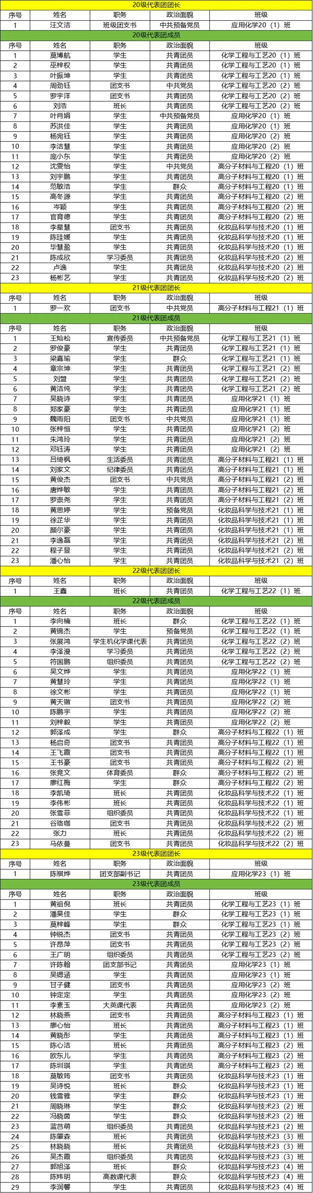 出席广东药科大学医药化工学院第十六次学生代表大会代表名单如下(按年级排序):