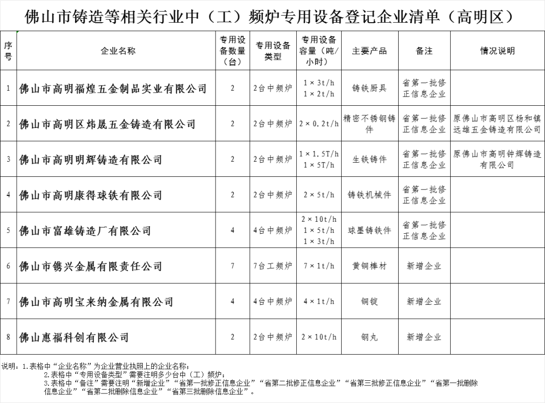 附件:佛山市铸造等相关行业中(工)频炉专用设备登记企业清单