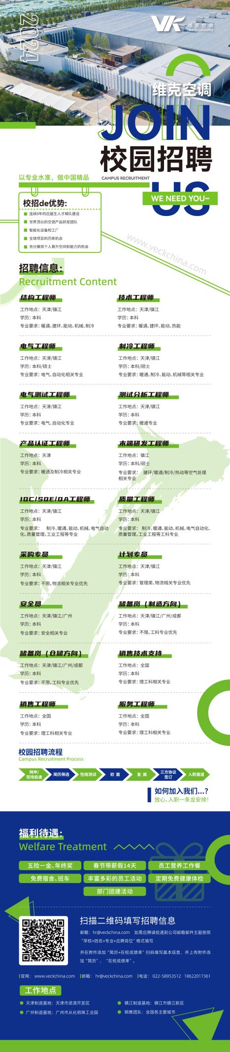结构工程师、技术工程师、电气工程师、制冷工程师、电气测试工程师、测试分析工程师、产品认证工程师、末端研发工程师、IQC/SQE/QA工程师、质量工程师、采购专员、计划专员、安全员、储备岗(制造方向)、储备岗(仓储方向)、销售技术支持、销售工程师、服务工程师