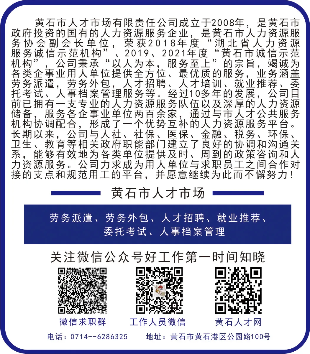 工作地址:湖北省黄石市市辖区汪仁镇新城路东18号