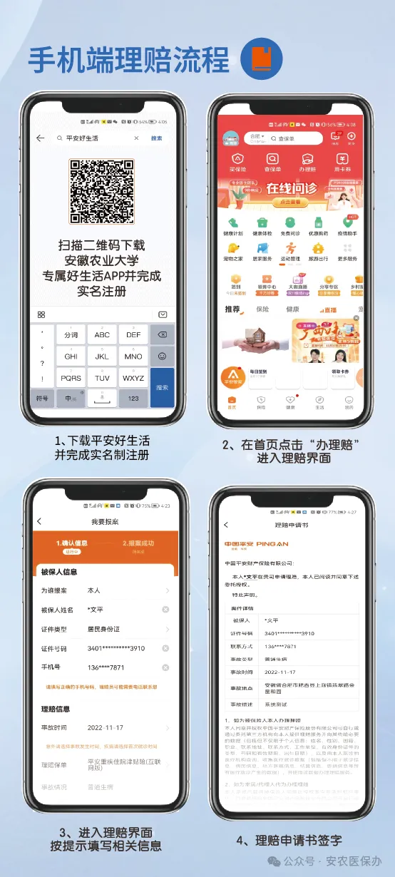 我校2024年参保学生的大学生商保线上理赔核报,参保生可登录“平安好生活app”线上提交门诊、住院二次报销等相关材料后,申请核报。具体请详细阅读并参考文中“线上理赔流程”。