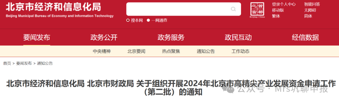 为加快推进本市新型工业化,推动高精尖产业高质量发展,根据《北京市“十四五”时期高精尖产业发展规划》《北京市关于促进高精尖产业投资推进制造业高端智能绿色发展的若干措施》《北京市高精尖产业发展资金管理办法》等文件规定,以及2024年北京市高精尖产业发展资金(以下简称高精尖资金)实施指南,组织开展2024年北京市高精尖产业发展资金申请工作(第二批),现将有关事宜通知如下: