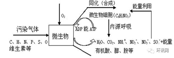 在生物法处理有机废气的过程中,污染物去除的实质就是利用有机物作为营养物质被微生物吸收、代谢和利用。这一过程比较复杂,它由物理、化学、物理化学和生物化学反应所组成。