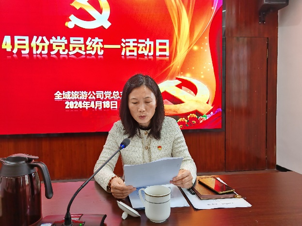 为深入学习贯彻落实习近平新时代中国特色社会主义思想,扎实开展党员常态化学习教育,不断增强全体党员干部政治理论水平,结合景区关于在全党开展党纪学习教育的相关要求,4月18日下午,全域旅游公司党总支组织开展4月份“党员统一活动日”活动,公司领导班子和全体党员(含预备党员)参加活动。
