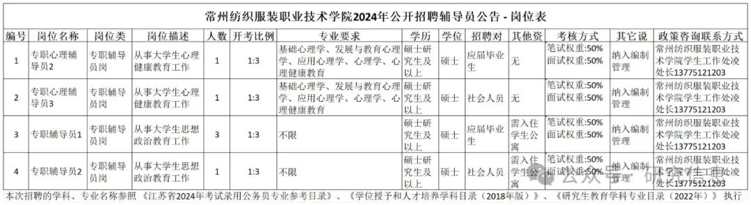 常州纺织服装职业技术学院人事处负责回答此次招聘政策咨询。