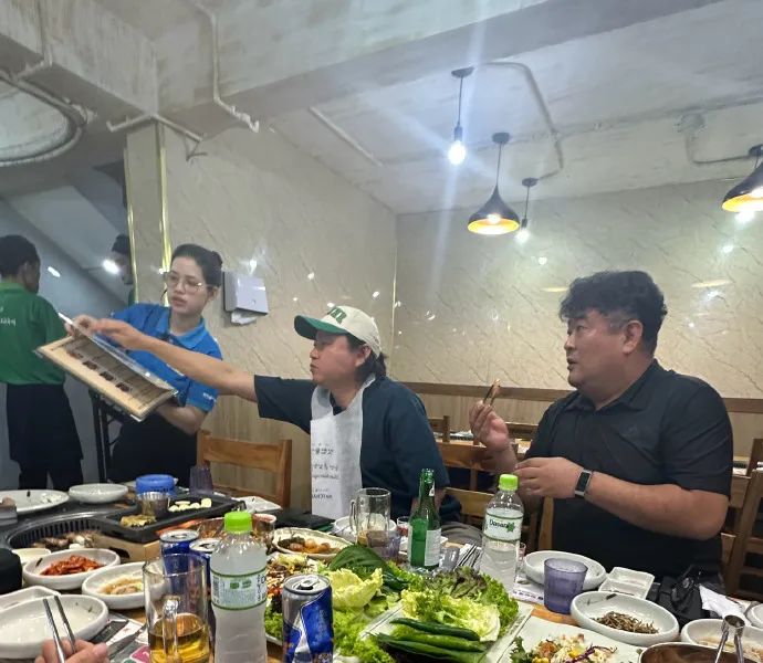 对面吃饭的这两位是韩国客户,中途叫了一个越南女孩,吃完饭直接两个人去开房间,我挺震惊的。(行事不是特别收敛,韩国人不是很含蓄的吗?)