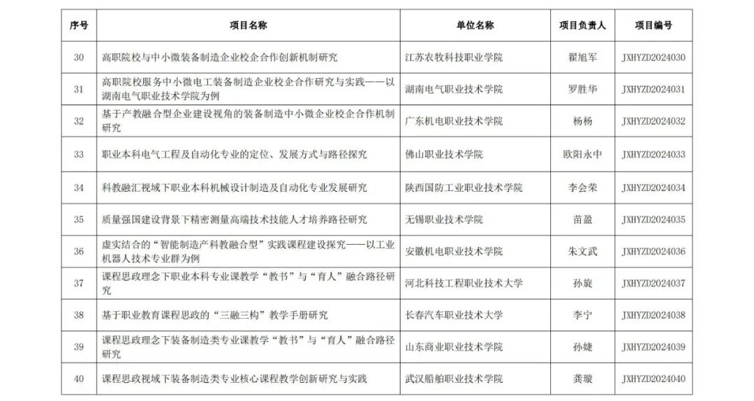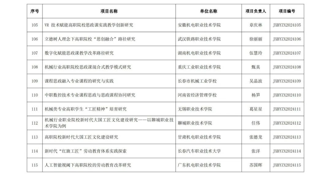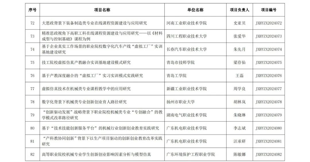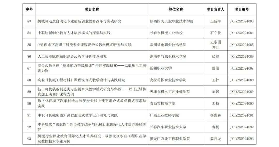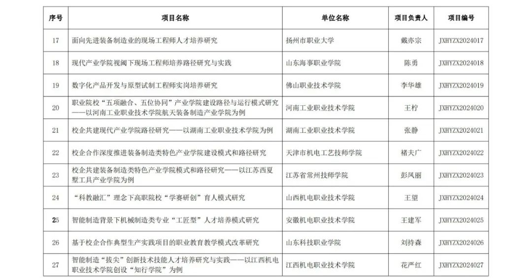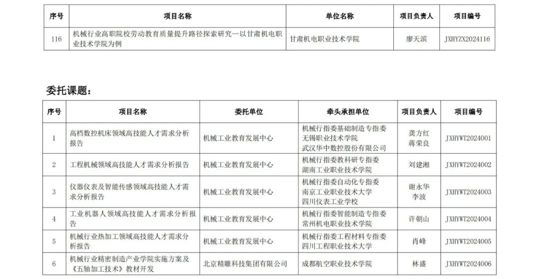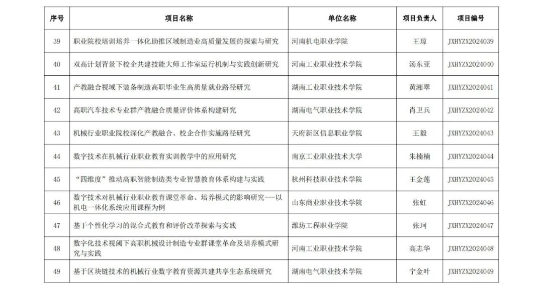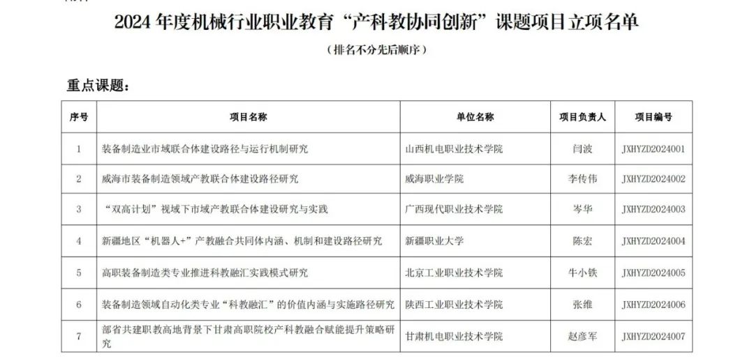 关于公布2024年度机械行业职业教育“产科教协同创新”课题项目立项名单的通知