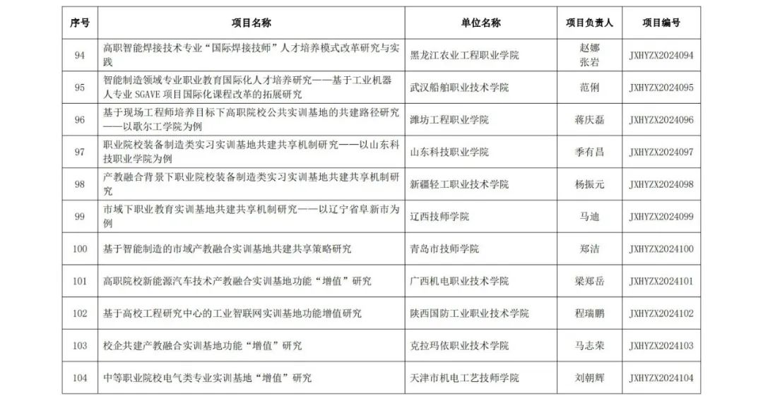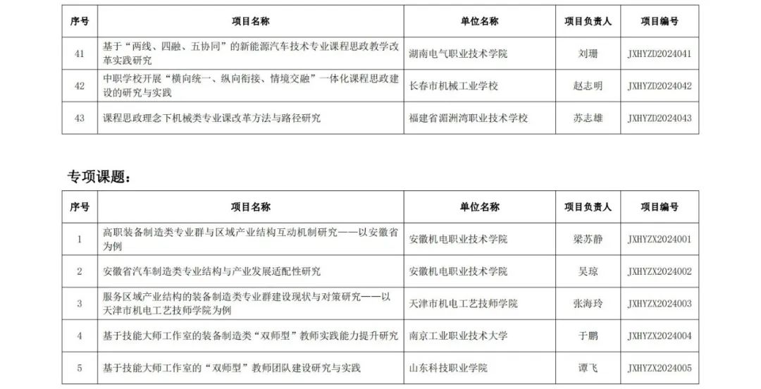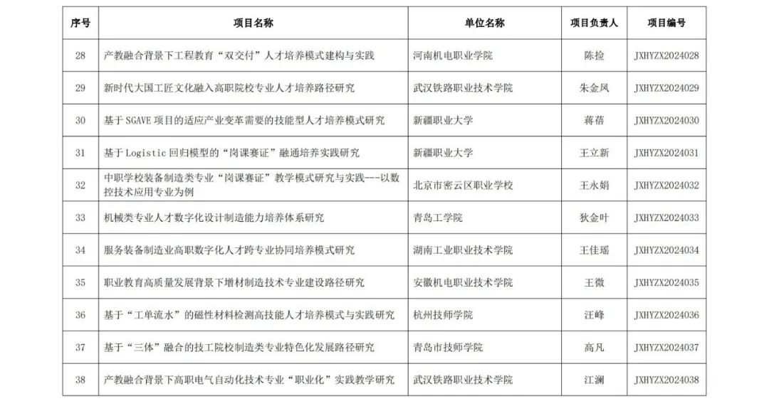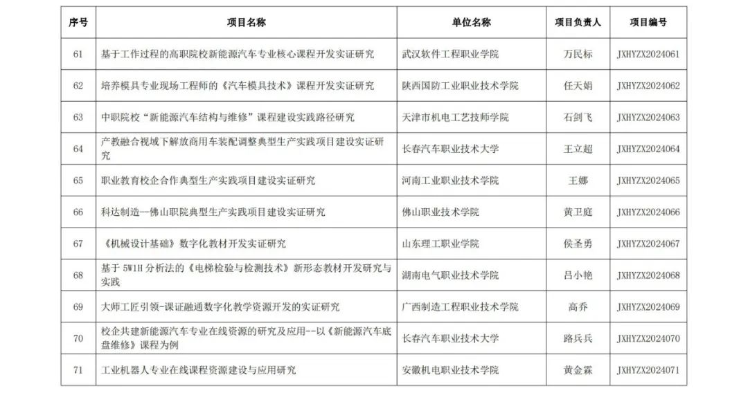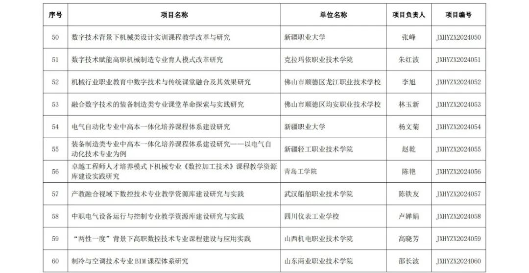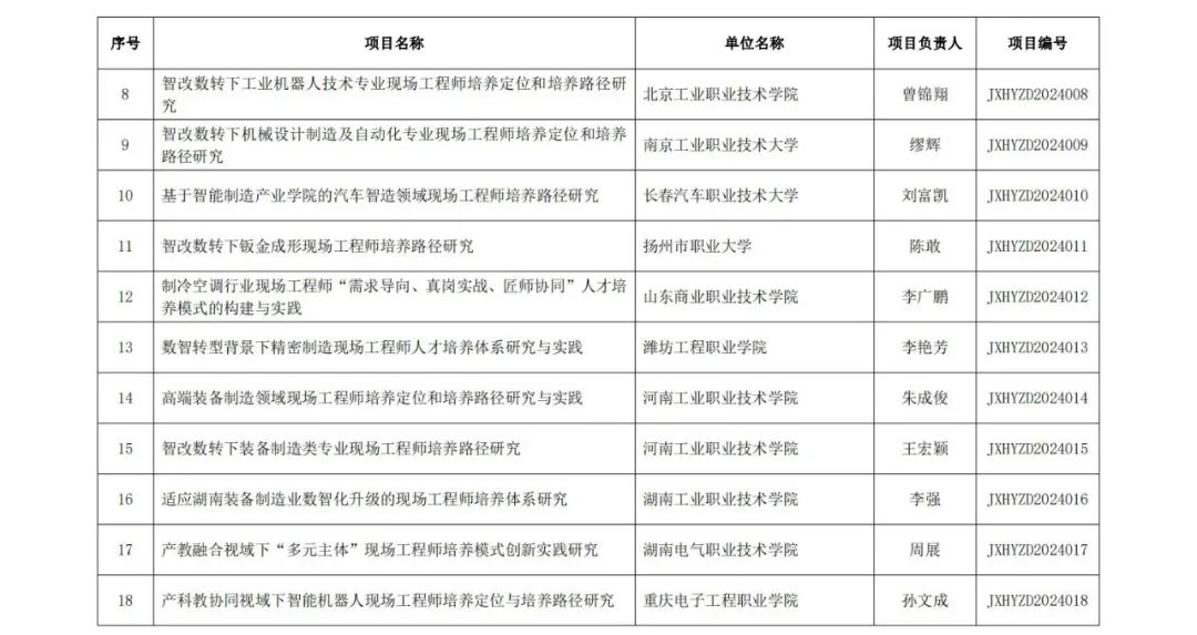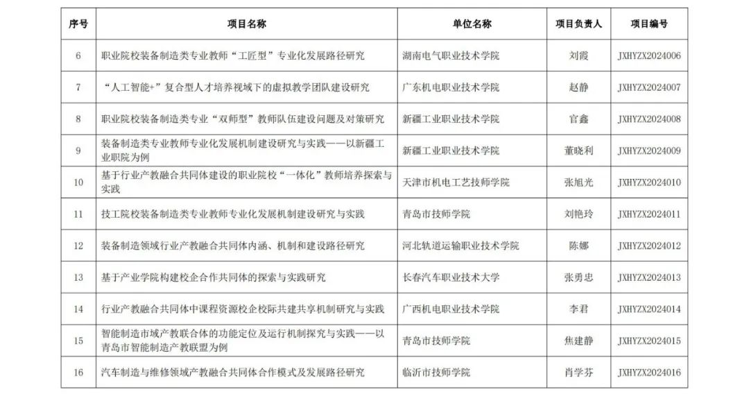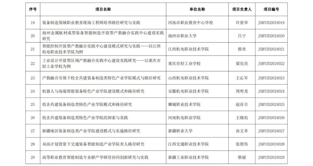 关于公布2024年度机械行业职业教育“产科教协同创新”课题项目立项名单的通知