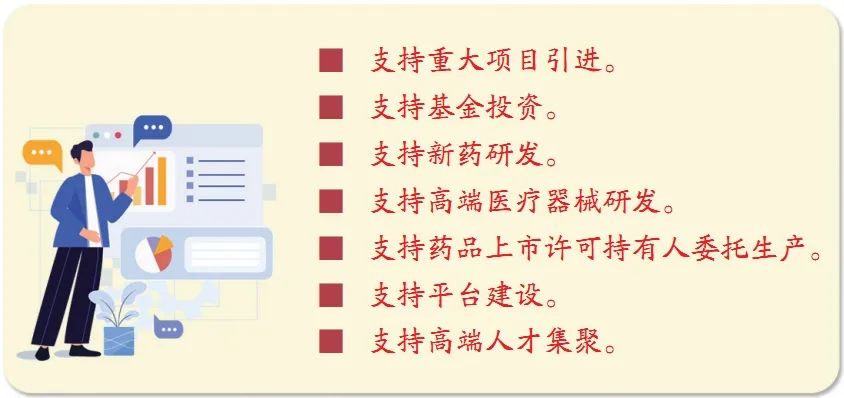对生物药、中药、化学药、创新药和改良型新药给予支持。对创新药、改良型新药及突破性治疗药物取得进展的,分级分类给予资金奖励。