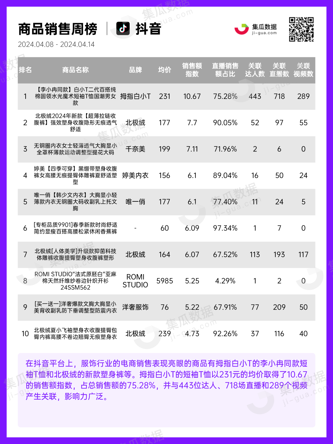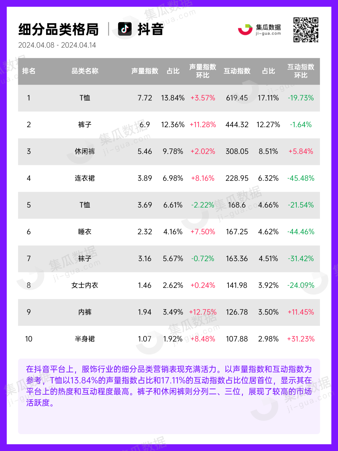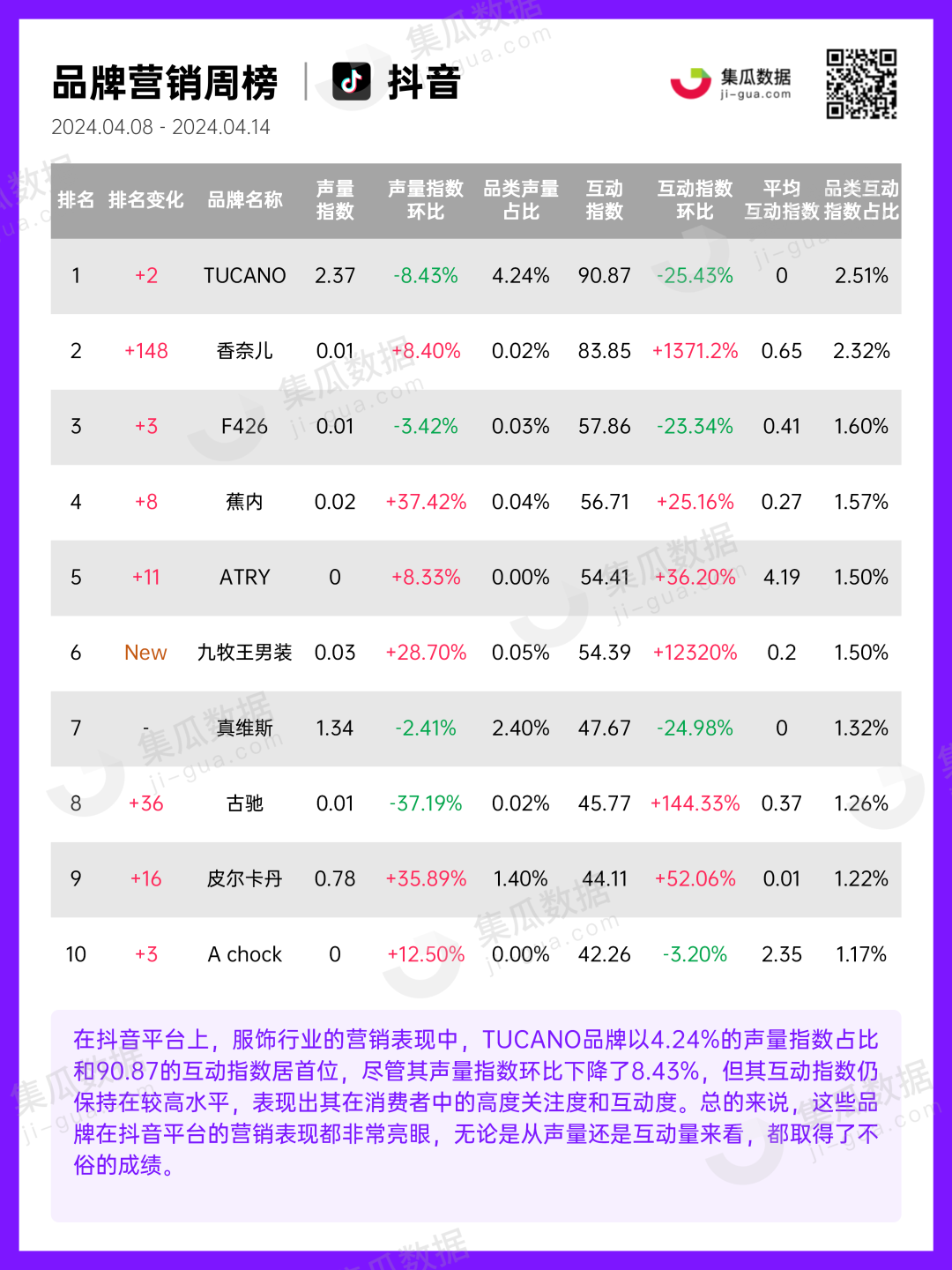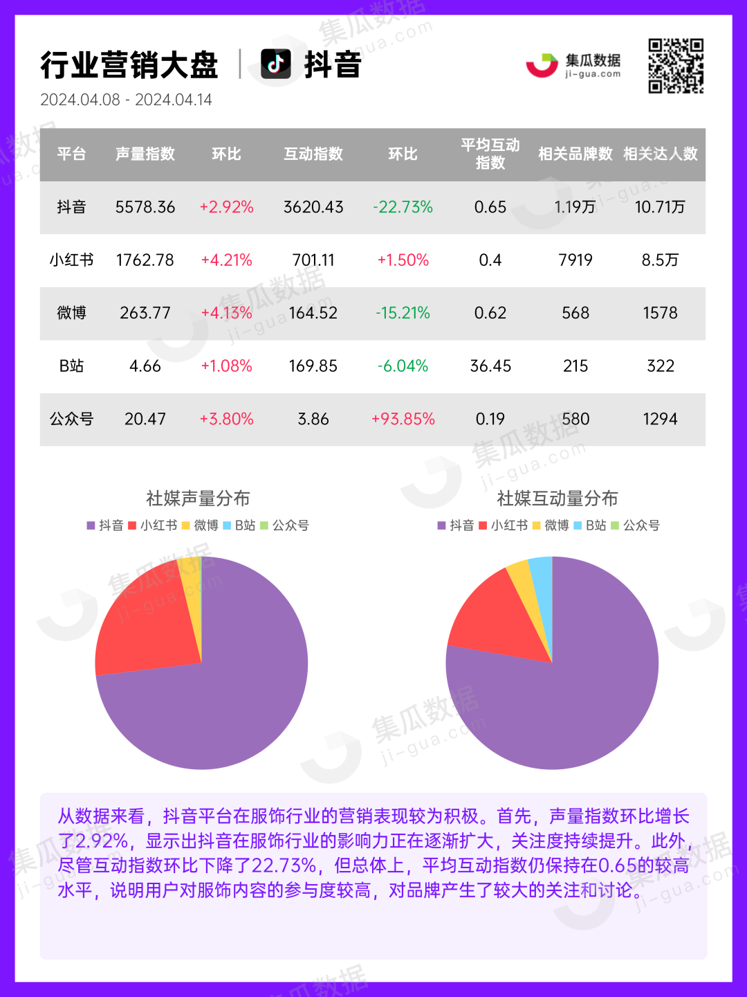 服饰行业 | 2024年4月第2周社媒电商&营销周报-集瓜数据