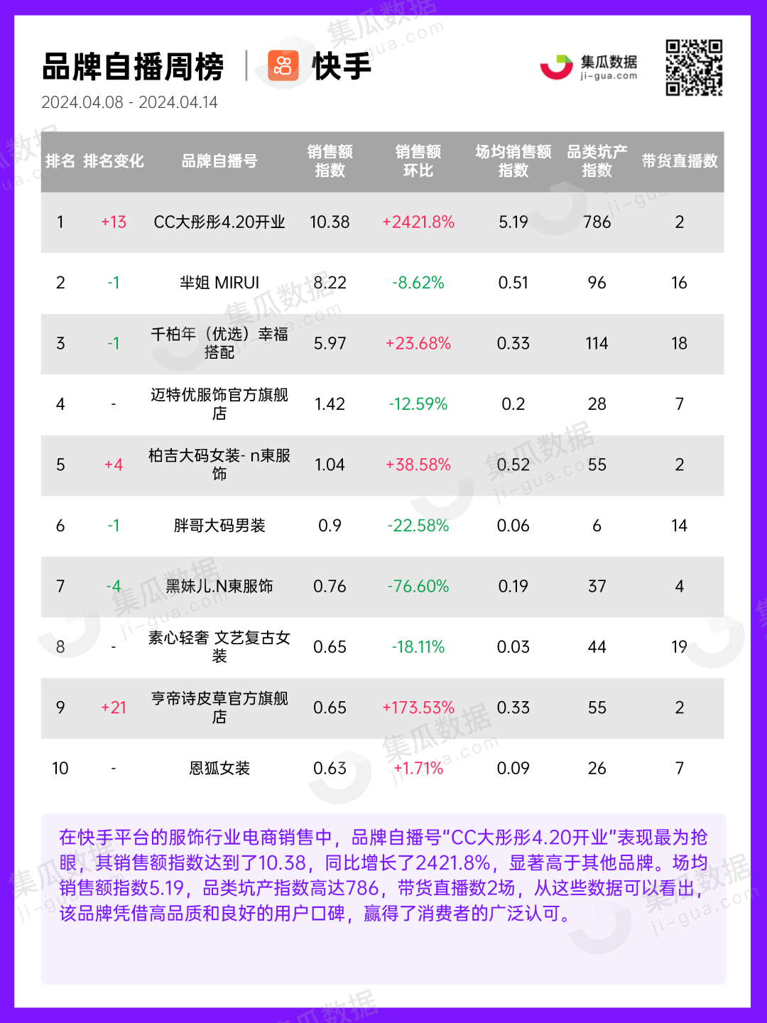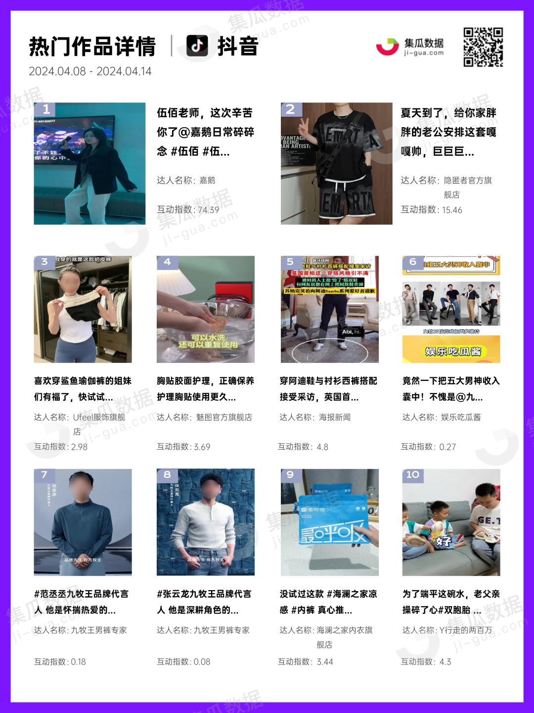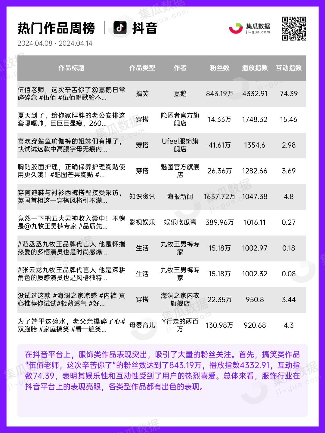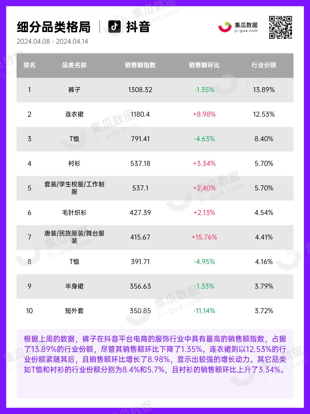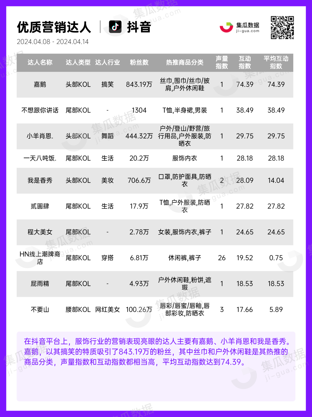 服饰行业 | 2024年4月第2周社媒电商&营销周报-集瓜数据