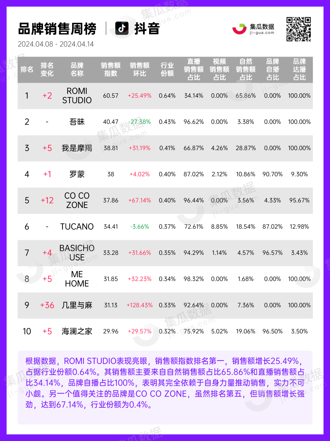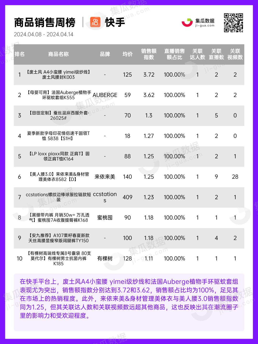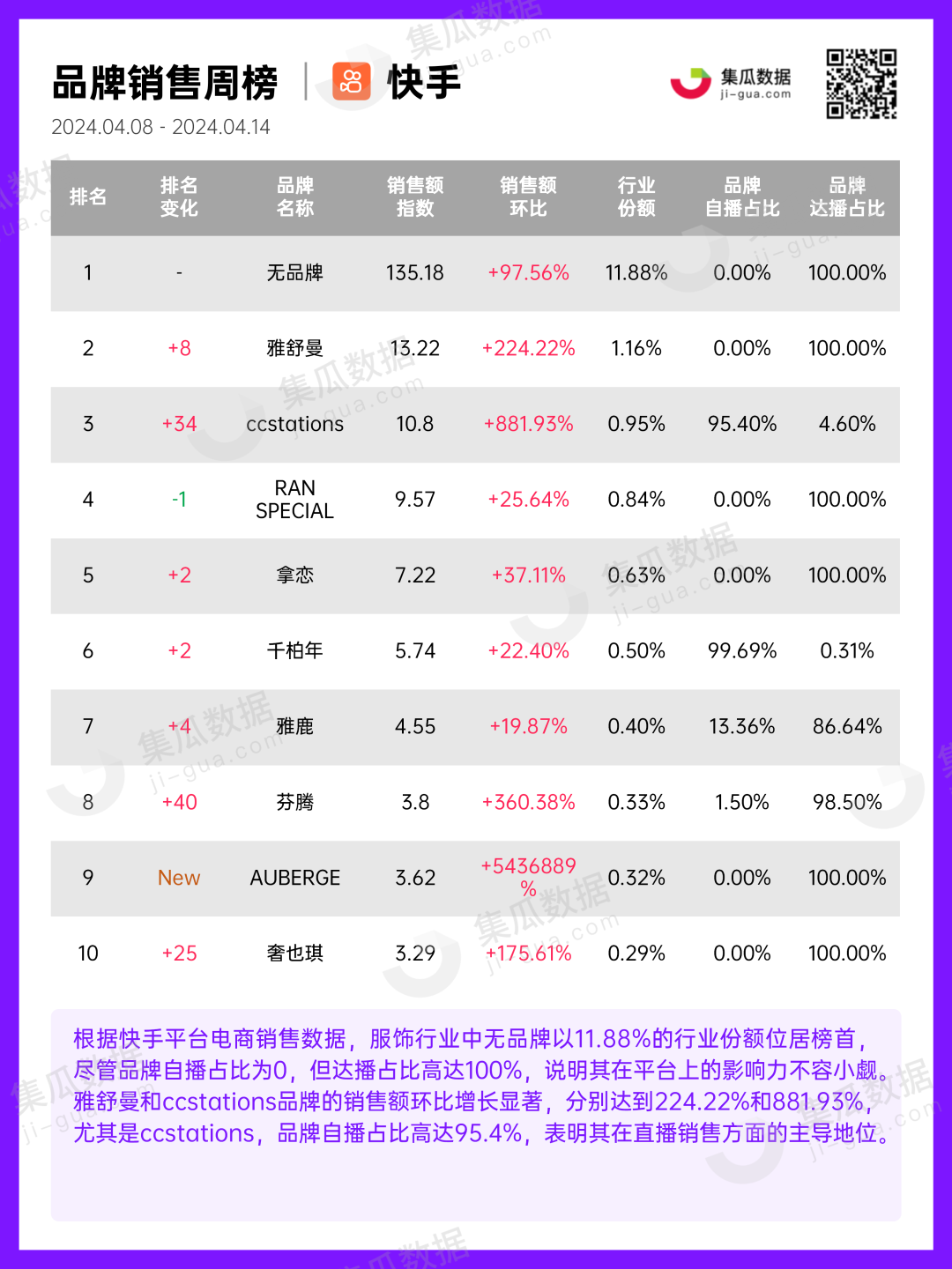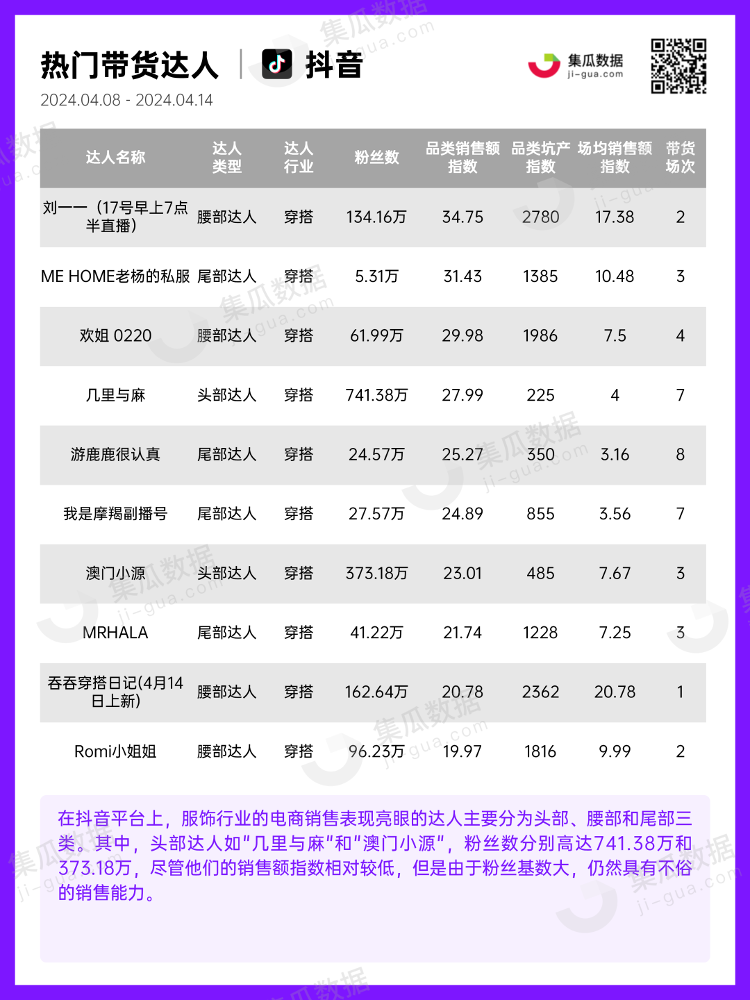 服饰行业 | 2024年4月第2周社媒电商&营销周报-集瓜数据