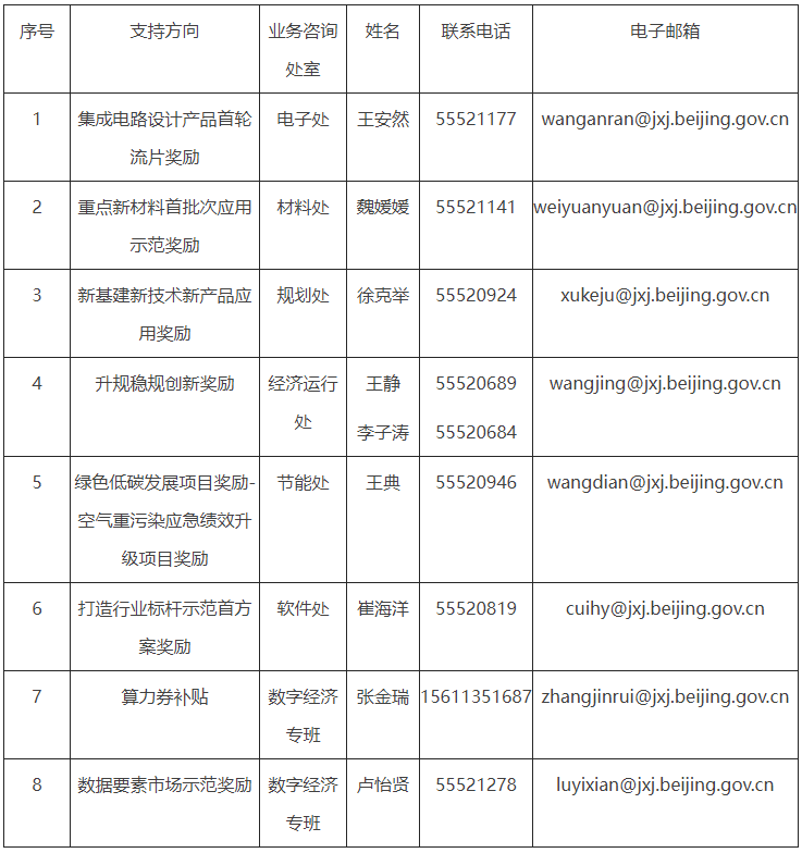 附件:1.集成电路设计产品首轮流片奖励申报说明 2.重点新材料首批次应用示范奖励申报说明 3.新基建新技术新产品应用奖励申报说明 4.升规稳规创新奖励申报说明 5.空气重污染应急绩效升级项目奖励申报说明 6.打造行业标杆示范首方案奖励申报说明 7.算力券补贴申报说明 8.数据要素市场示范奖励申报说明 9.一体化申报平台高精尖资金申报操作流程 10.项目入库操作流程 北京市经济和信息化局 北京市财政局 2024年4月18日