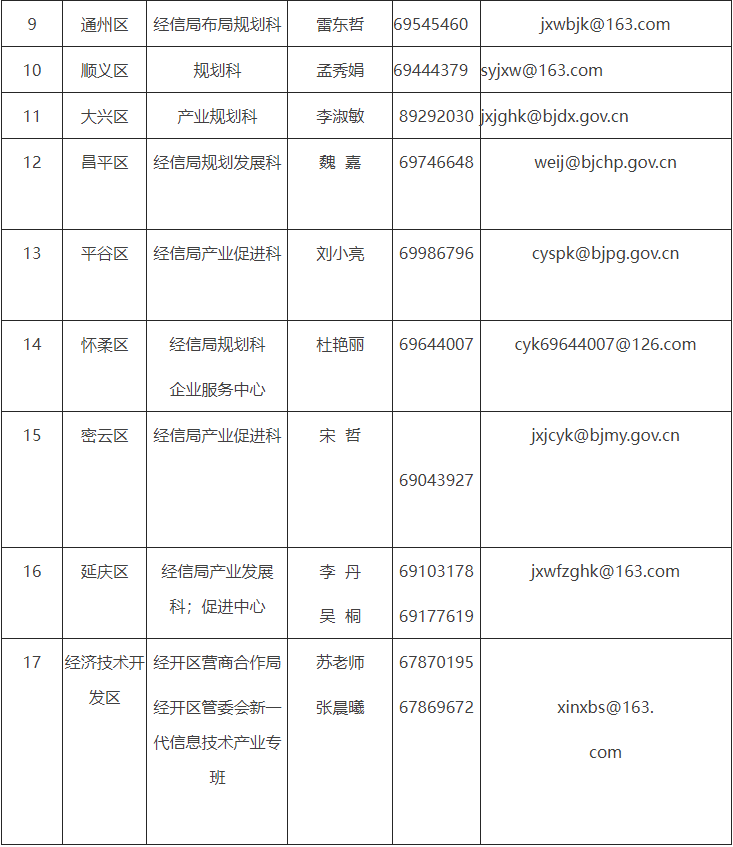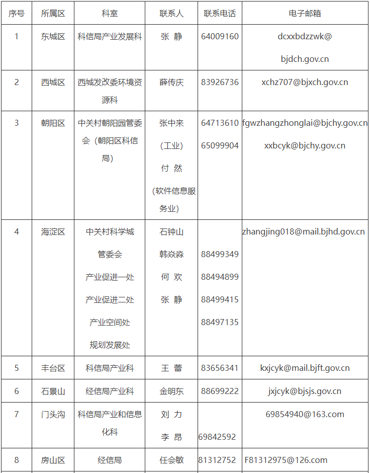 3.各区联系方式详见下表: