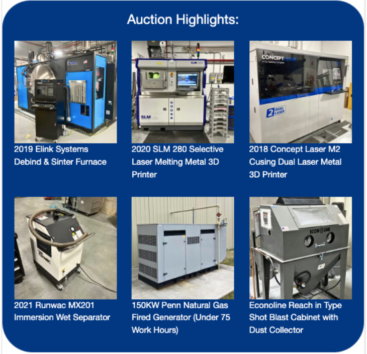 ●西屋制动正在拍卖2018年的GE Concept Laser M2 Cusing 双激光系统,以及2020年的SLM 280 和 2019 年的Debind & Sinter Furnace。西屋制动的此次拍卖很可能与Allegheny County(阿勒格尼县)和Philadelphia(费城)的工厂关闭有关,但此次工厂关闭更大的原因是资源重组,而不是业务运营不佳。2023 年,在货运和运输部门的推动下,西屋制动实现了显著增长,第三季度销售额增长 22.5%,达到 25.5 亿美元。