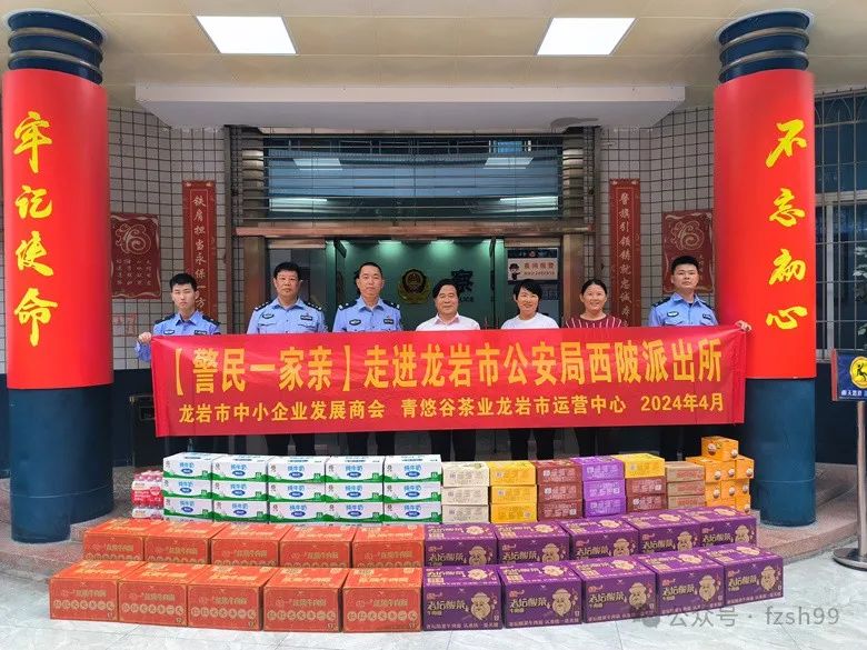 4月12日下午,龙岩市中小企业发展商会、青悠谷茶业龙岩市运营中心代表前往龙岩市公安局西陂派出所,捐赠方便面、牛奶、面包等慰问物资并感谢全体干警为企业健康发展、为百姓安居乐业保驾护航。此为发展商会发起的【警民一家亲】公益项目2024年度第十四次举办。