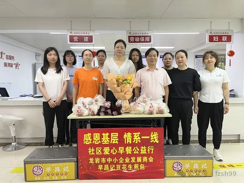 17日早上,【社区爱心早餐公益行】2024年第三十四场活动在曹溪街道溪园社区温馨举办,龙岩市中小企业发展商会和早昌记豆花生煎包代表向社区工作人员献花、捐赠早餐并感谢她们在基层一线的辛勤工作。