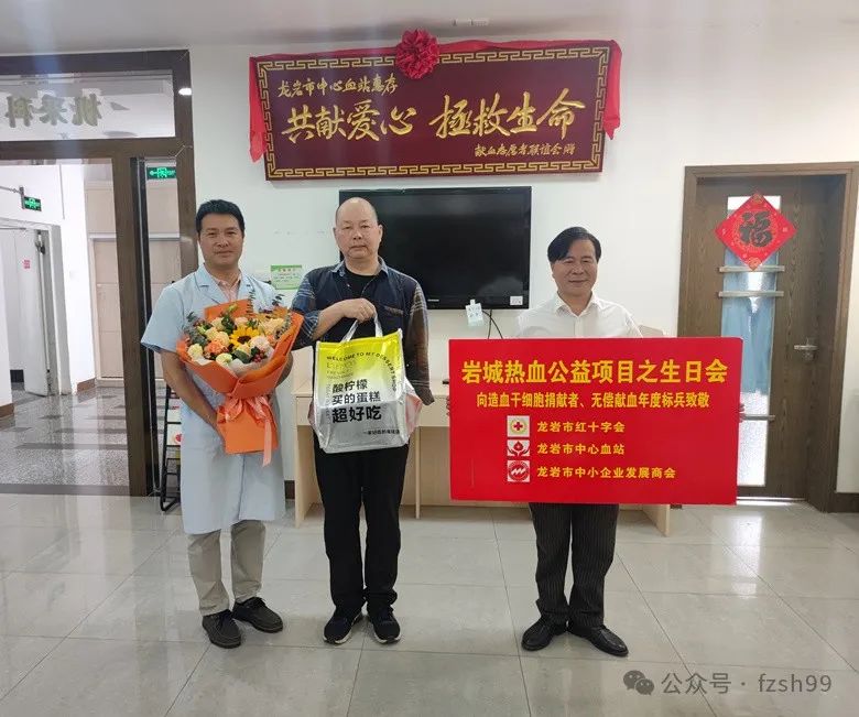 15日上午,岩城热血公益项目第二十七场活动在龙岩市中心血站温馨举办,累计献血231次的标兵洪隆平到场接受花束并领取由乐柠檬活力烘焙捐赠的生日蛋糕和温馨祝福。本项目由龙岩市红十字会、龙岩市中心血站、龙岩市中小企业发展商会联合发起。