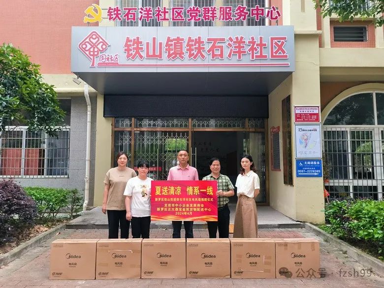 18日下午,龙岩市中小企业发展商会、新罗区正大森宝金筑货物配送中心代表前往新罗区铁山街道铁石洋社区,捐赠六台电风扇并感谢所有工作人员在一线的辛勤付出。