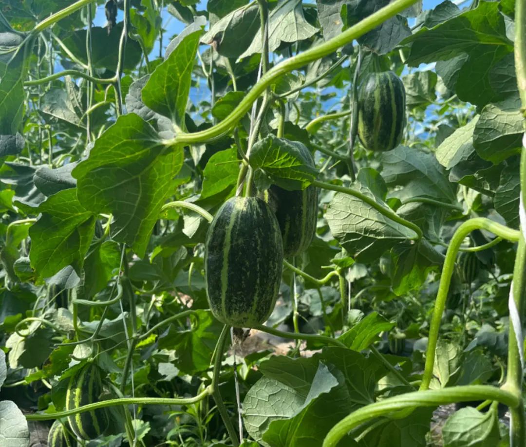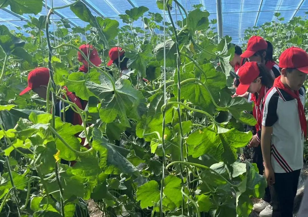在高品质果蔬产业园,19个大棚井然有序的排列着。走进大棚,放眼望去,一个个瓜形匀称、纹路清晰的甜瓜隐匿于瓜藤枝蔓间。学生们在种植户的带领下,通过听、看、摸等方式,与甜瓜进行了亲密接触。听工作人员耐心讲解了甜瓜种植的时间、成长的周期、以及对土壤、温度的要求,虽然天气炎热,大棚里更是闷热,很多同学的衣服都湿透了,但他们依然兴趣盎然,也体会到了这些果实来之不易。
