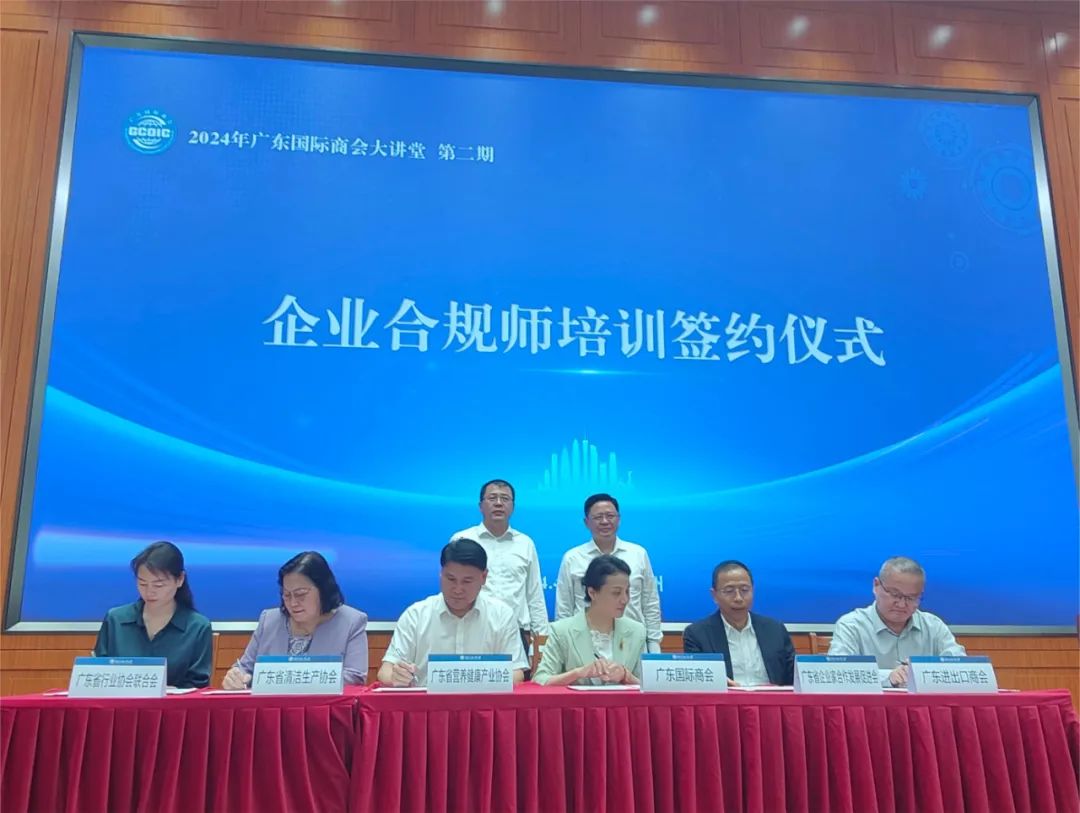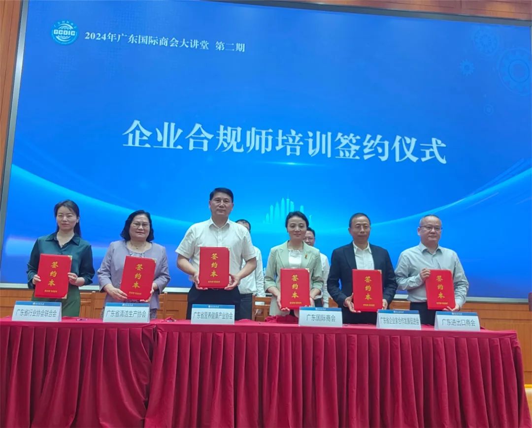 4月18日下午,以“企业国际化经营合规与风险防范”为主题的2024年广东国际商会第二期大讲堂在广东外语外贸大学举行。广东省贸促会(广东国际商会)党组书记、会长陈小锋,广东外语外贸大学党委副书记、校长闫相斌出席活动。全省贸促系统(国际商会)代表、行业商协会和企业代表近100人参加活动。我会黄建平会长受邀出席大讲堂,并与广东国际商会签署企业合规师培训合作协议。