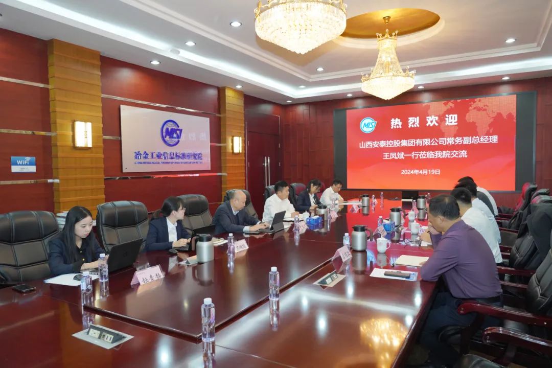 4月19日,山西安泰控股集团有限公司(以下简称:安泰控股)常务副总经理王凤斌、总裁助理兼规划发展部部长李洪铎、技术中心主任郑安民、环保与节能减排管理部部长温维汉、规划发展部副部长李博等一行莅临冶金工业信息标准研究院(以下简称:信息标准院),与党委书记、院长张龙强,相关部门负责人和专业人员,就安泰控股绿色低碳、智能高效发展等议题进行深入交流。