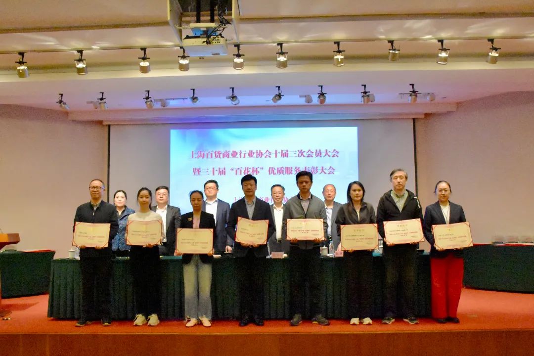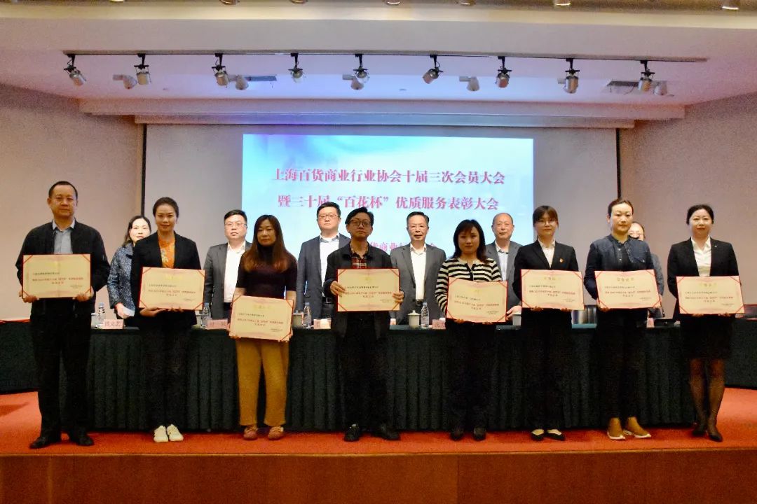 4月18日下午,上海百货商业行业协会十届三次会员大会暨第三十届“百花杯”优质服务竞赛表彰大会在新世界城13楼会议中心隆重举行。协会副会长、公司党委副书记、副董事长、总经理沈为民,公司运营管理部经理刘莹和公司获奖代表出席。