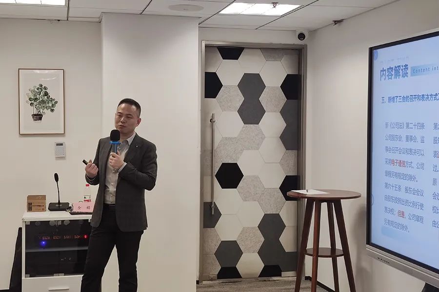 韩志刚律师还就新《公司法》规定公司法定代表人“自动辞职”、过错追偿制度,单层制公司治理结构,三会的召开、表决方式及表决规则,股东权利的穿透行使,股东除权,股东可以要求查阅会计凭证以及出资额五年内缴足等重大修订内容做了特别强调。