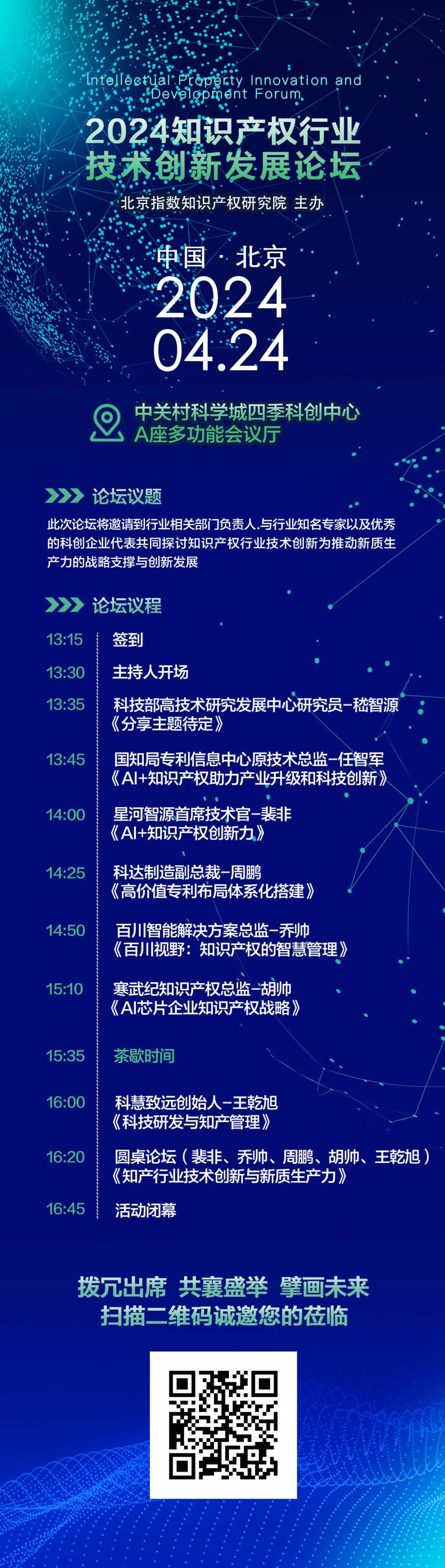 此次论坛旨在汇聚行业精英,共同探讨知识产权行业技术创新如何成为推动新质生产力的战略支撑与创新动力。论坛将邀请到行业相关部门负责人、知名专家以及优秀的科创企业代表,围绕知识产权行业的最新趋势、技术创新以及未来发展方向展开深入交流。